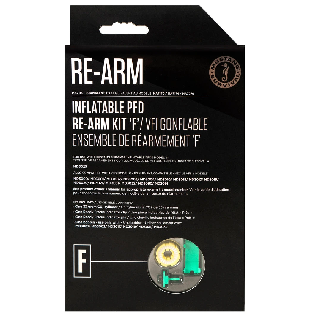 Use only Mustang Survival re-arm kits. Use of other re-arm kits may result in improper operation or failure to operate and will void the product’s warranty.Â