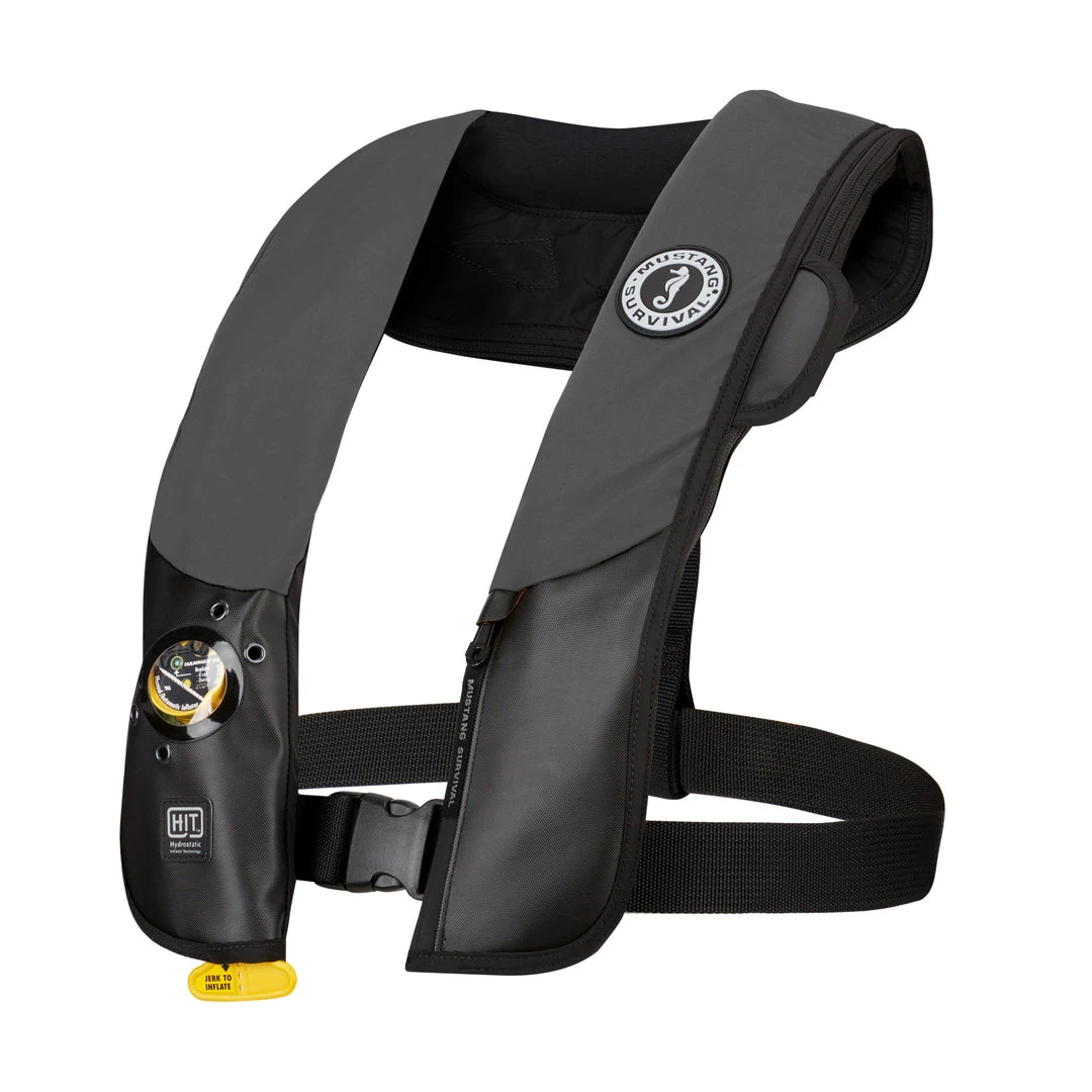 - Hydrostatic Inflator Technology (HIT) only inflates when submerged in 4” or more of water pressure (not in rain, spray, or high humidity)