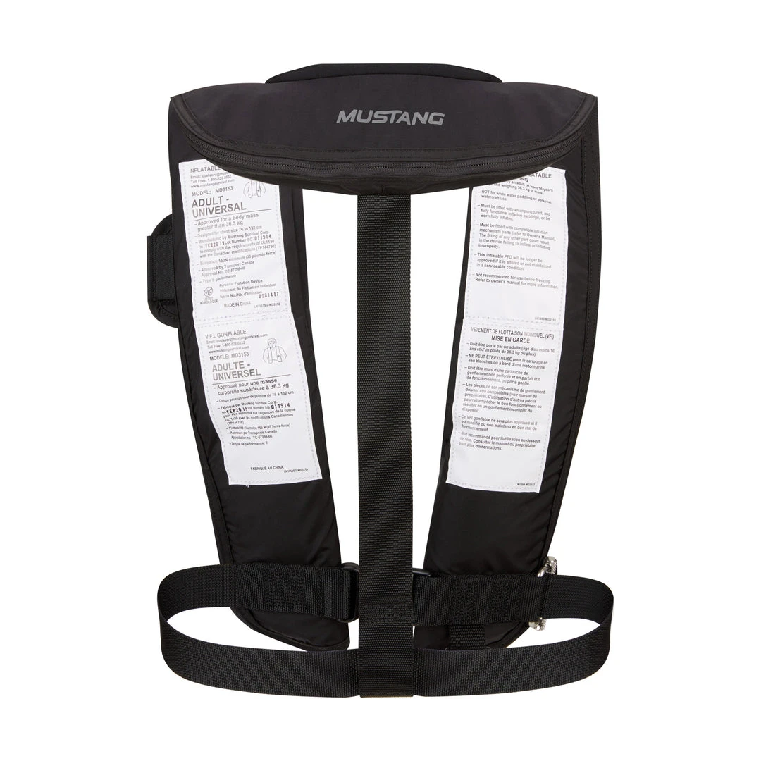 - Manual inflation handle allows you to inflate the vest at any time