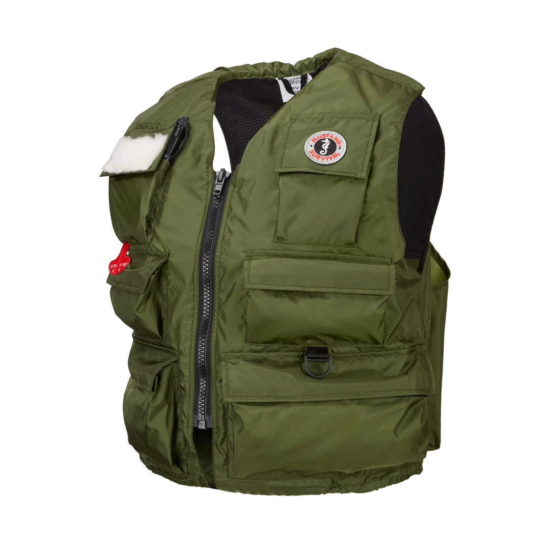 This front-entry manual inflatable PFD has a retro design and plenty of storage to organize your fishing gear.