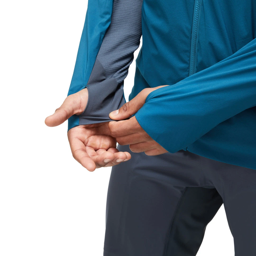 This functional and efficient design reduces layering bulk while ensuring enough roominess for comfortable mobility. The thermoregulating material is body-mapped to deliver insulation where it’s needed most and retains heat even when wet. Hydrophobic properties and lofted fibres on a mesh core mean this jacket is quick-drying and highly breathable. The stretch nylon outer with DWR finish stands up to light rain and spray. Increased abrasion resistance reduces pilling while thumbholes at the cuffs keep everything in place.