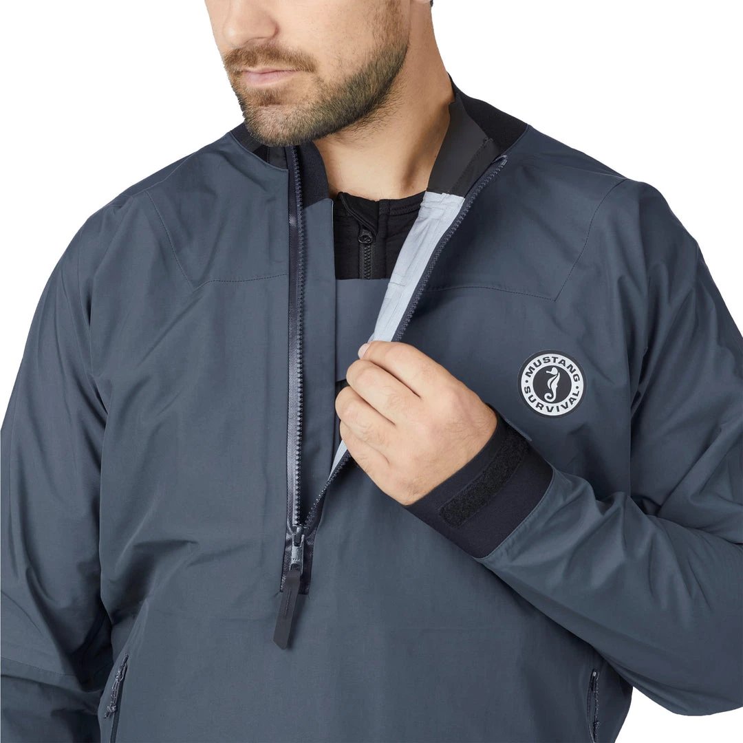 Exclusive 3-layer MarineSpec SP waterproof breathable fabric is designed for and tested in demanding salt-water environments. The neoprene neck gasket seals quickly and allows for one-handed venting. An AIS/PLB pocket provides easy access in emergencies, and two zippered hand pockets safely and dryly stow your essentials.